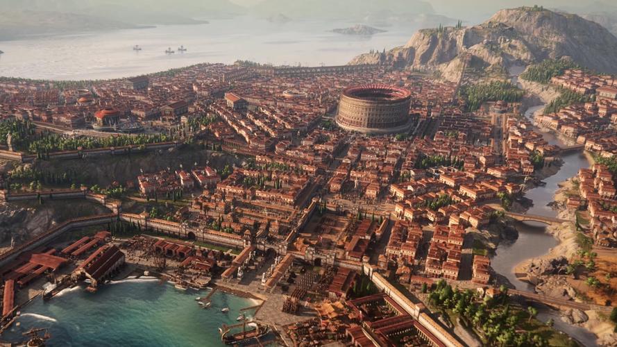 游戏采用新一代图形渲染技术,精细还原古罗马标志性建筑、人物服饰与自然景观,呈现圆形竞技场、宗教圣殿、市集街道及帝国疆域,展现罗马文明辉煌。