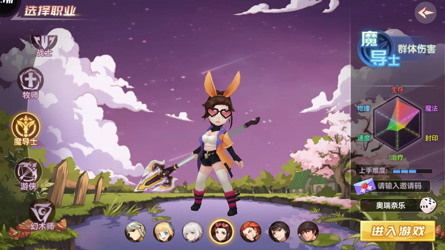 四大职业选择:战士(物理输出,前排主力)、魔导士(范围魔法攻击)、牧师(治疗支援,保障生存)、幻术师(控制技能,打乱对手节奏)。