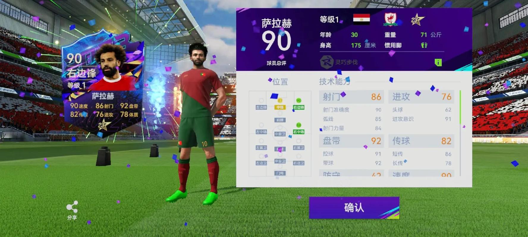 坎特是中场防守大闸!身高168cm,抢断能力超强,防守属性92。他覆盖范围广,能持续给持球人施压,死死限制对手进攻组织。由守转攻时,他还能持球推进,给前场创造机会。速度75,爆发力也不错,攻防两端都能跑起来!