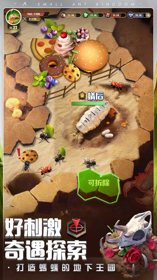 3D写实蚂蚁策略手游中,玩家掌控蚁巢,指挥工蚁挖通道、集物资,用百种建筑模块规划地下王国,推动蚁穴从简陋走向繁荣。