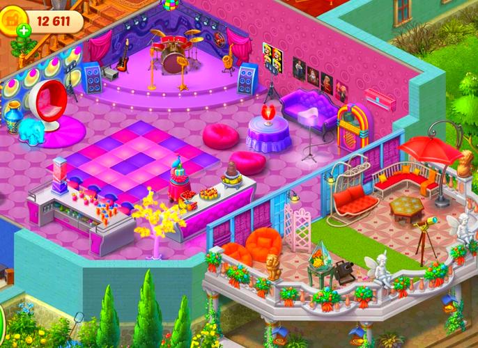 梦幻家园是Playrix经典三消游戏。闯关集星星,解锁家园区域,装扮各个角落。