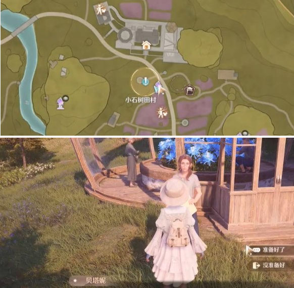 任务位置:传送至小石树田村的【紫穗草花田】传送点,向前走几步就可以在一个花房边上看到NPC了。