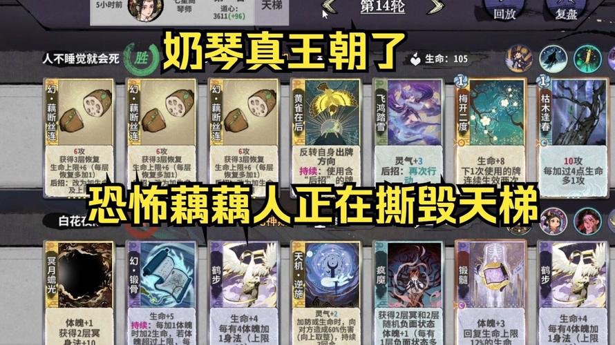 琴奶应对云剑:万金油上分首选,专治云剑套路!核心输出靠天音困仙曲,卡组必带:回春曲、转弦合调、天音困仙曲、梅开二度、金蝉脱壳、转弦合调、气吞山河、枯木逢春。按顺序摆位,效果拉满!