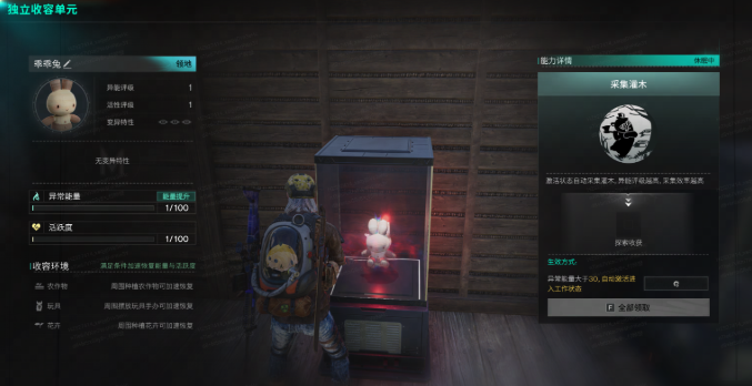 8、副产品:活跃度>90%,产出资源时有10%的概率给其他造物型异常物增加2点能量。