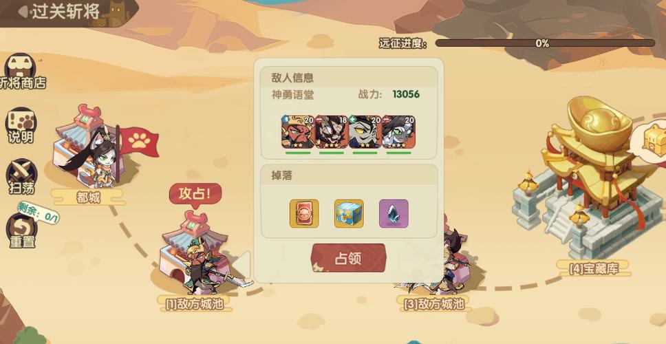 普通关卡每次通关,稳定领取青龙符、阵法精要;首次通关,额外获取步步宝箱、阵法碎片。