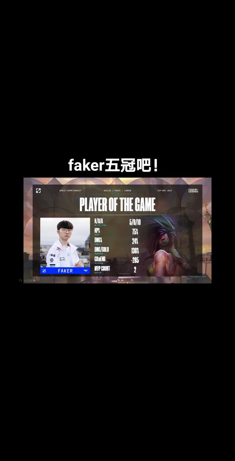 Faker来自韩国,是英雄联盟赛场明星选手。带领T1及SKT期间,斩获众多赛事战绩。其精准操作、卓越意识与果断临场判断能力,成为后来者追逐的目标。