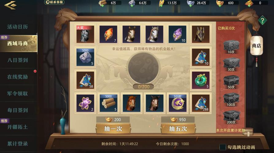 欲速则达(开服第2天0点 - 第6天23:59):含消耗加速道具、使用军令、参与军团建筑、加入城战、征兵等5类任务,活动开始后同步开放。完成任务得银币、粮食、城建资源、加速道具、装备强化材料、武将经验、元宝、招贤册。