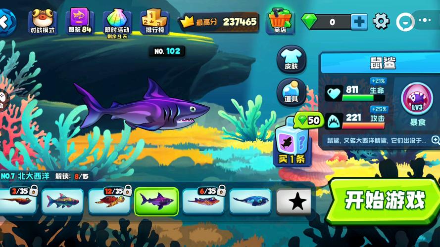 协作与伪装:与其他小鱼配合,集中攻击大型目标;伪装成弱小鱼类,躲避追击。先吞食小型目标积累实力,体型足够大再挑战更强对手。