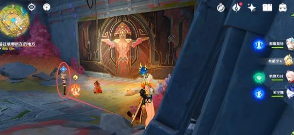 5、跟随龙伙伴来到图中位置,小龙撞倒石板后点击启动机关即可完成任务。