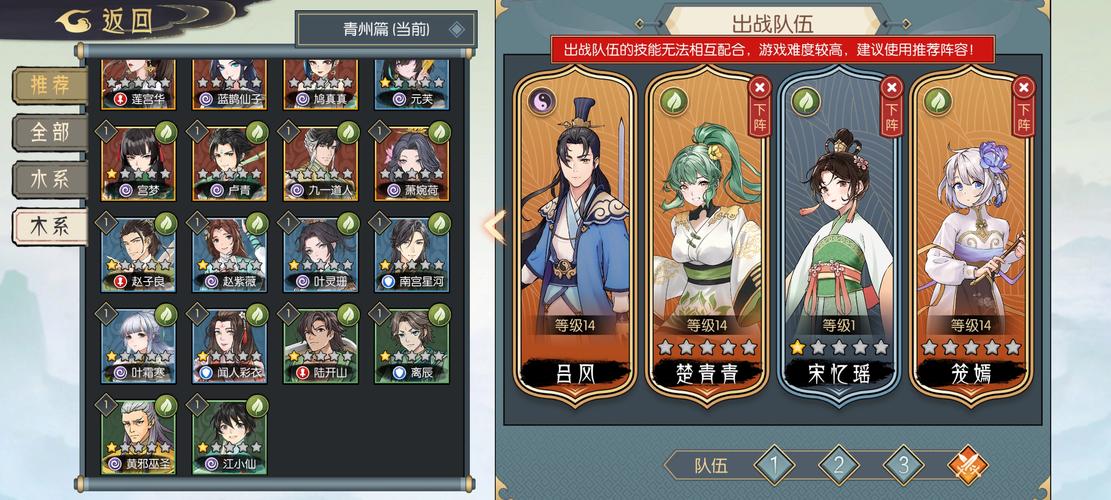 新手阵容思路二:叠浪队(清风、凌白鹭、聂如嫣、主角)