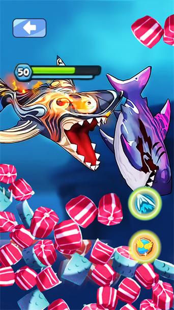 收集特殊鱼类获短时加速、隐身等技能。拾取随机刷新的金币、宝石,解锁新角色、提升属性。