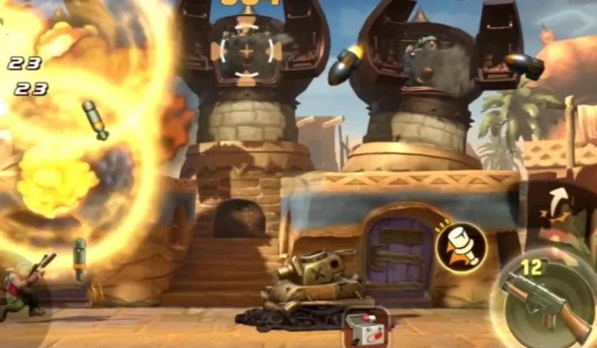 关卡设计充满挑战。推进时精准射击消灭步兵、坦克等敌人,巧妙躲避攻击,解开场景谜题获取隐藏奖励。必须了解不同敌人攻击模式与弱点。