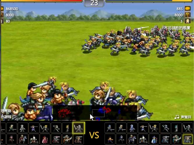 对局中,玩家从多样兵种自由搭配阵容对抗敌人。各单位作用独特,兵种间存在克制关系,需根据战局挑选针对对手的兵种取胜。计时器归零时,收入累积为金币;选中单位,金币充足则自动生产。拖动小地图可移动视角,点选single play或multi play进入单人或多人模式。