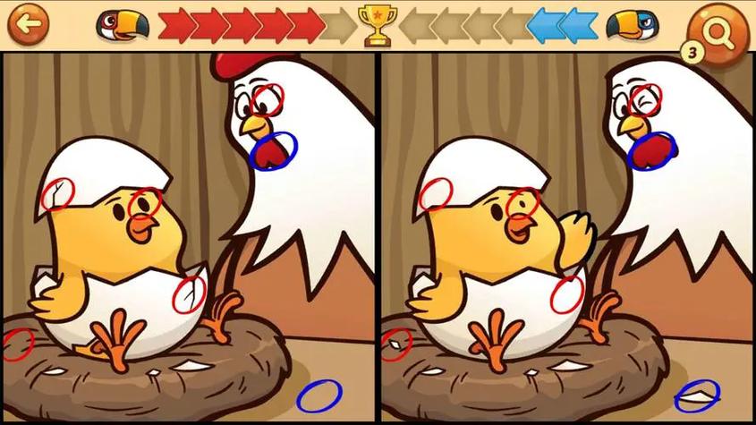游戏要求玩家在两幅高度相似图片中找出所有差异点,图片元素丰富、细节众多,需耐心和敏锐观察力逐一比对。干扰因素设计巧妙,如相似元素并置混淆、静态画面加入动态效果增加辨识难度,且有时间限制,需在规定时间内找全差异才能通关。