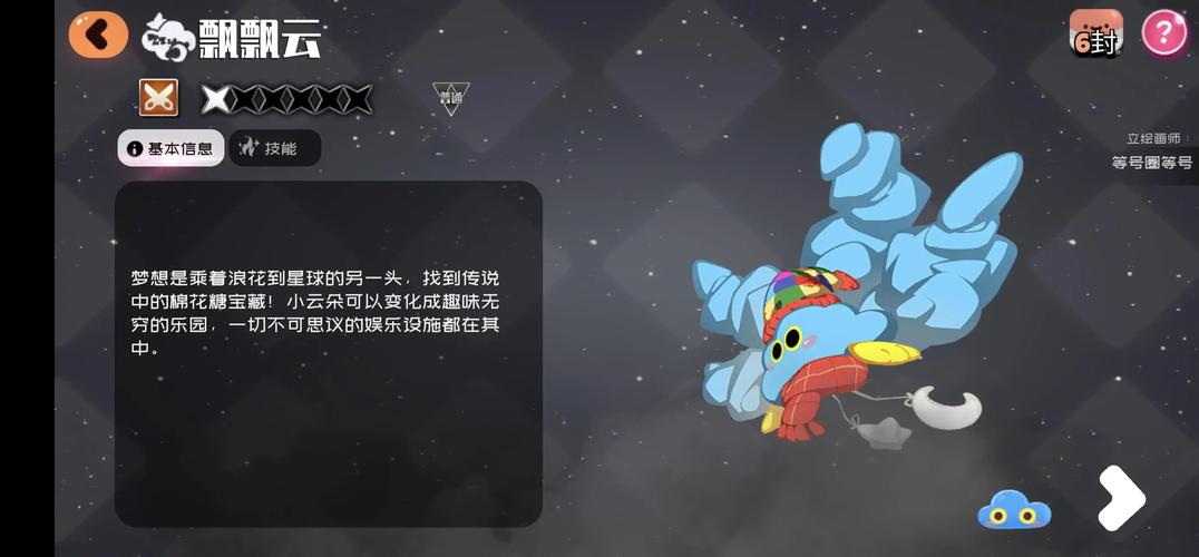 宠物技能分主动和被动。飘飘云主动技能“梦游天际”,让全体队友进入5秒无敌;被动技能随技能阶数(1 - 6阶)为全体提升15% - 35%护甲。灯点儿主动技能“启明星”,瞬间为全体回复70%生命值;被动效果使全体随时间回复生命(1 - 6星效果不同)。菇菇虫主动技能“爆炸菇”,自身暴击率提升100%,防御力提高50%,持续12秒。