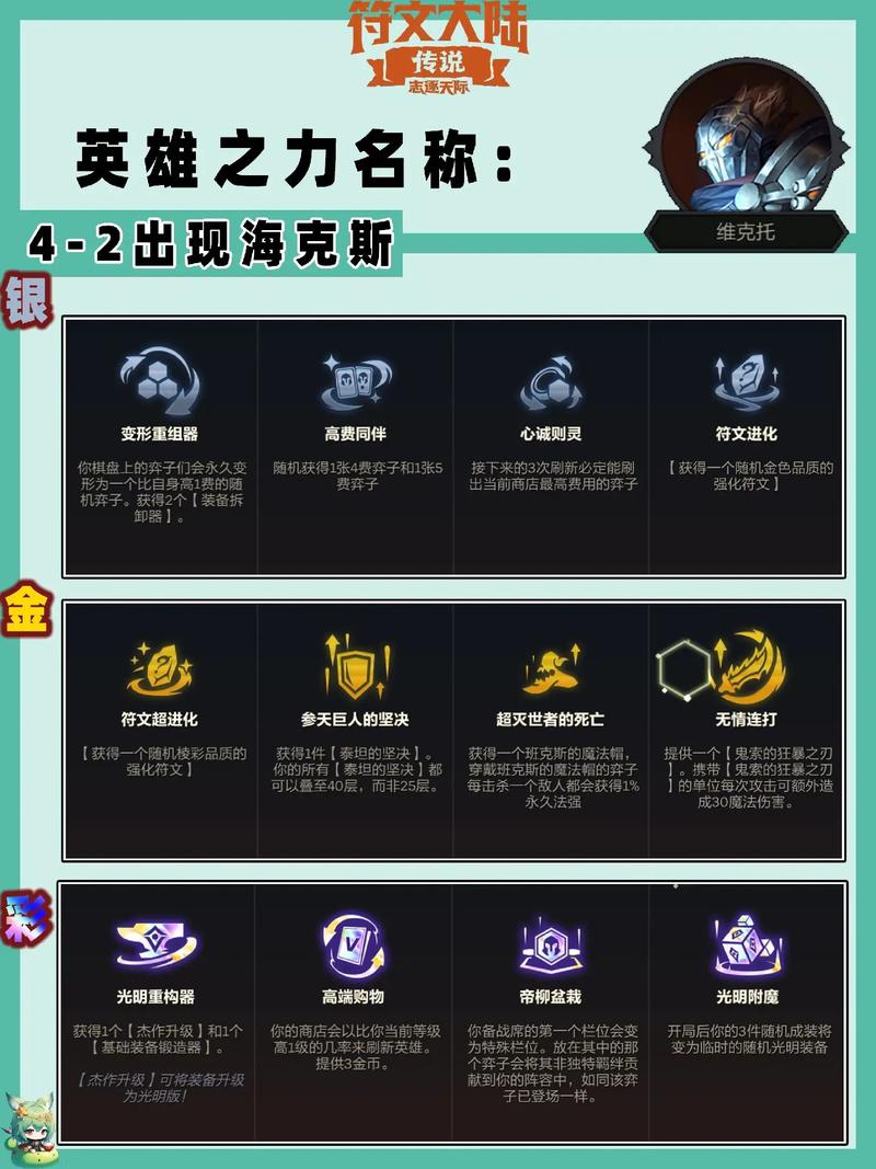 强化符文系统为核心玩法。玩家3、7、11、15级时各获一次符文选择机会。符文分白银、黄金、棱彩品质,同等级阶段所有玩家可选符文品质相同,确保对局公平起点。符文效果各异,部分颠覆英雄传统玩法。以下介绍实用符文搭配思路。