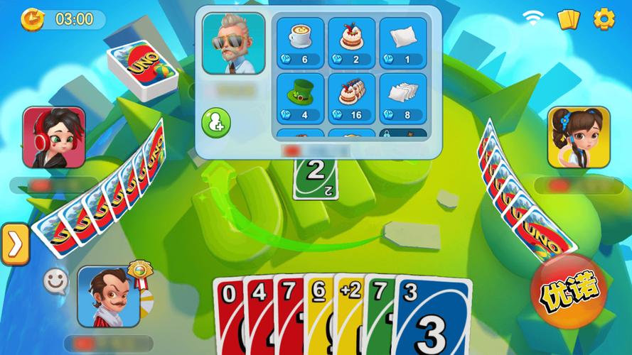 游戏玩法充实,含UNO世界杯模式,吸引全球两百多个国家和地区玩家竞技,中国区优胜选手可代表国家出征。以轻松竞技为核心,除巡回赛外,设赛季模式、锦标赛等多种赛事。玩家能自由组合小丑牌、反弹牌、叠加牌等规则,在好友房创造独特玩法。设计丰富3D场景闯关玩法,定期开放加州、纽约、日本等主题环球冒险关卡,通关可获奖励并体验趣味剧情。游戏规则简单,三分钟上手,每局时间短,适合利用碎片时间游玩。
