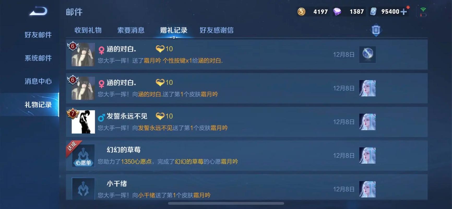 限时皮肤及时送:节日、版本更新出的限定款,上架期间开放赠送,春节、周年庆皮肤当礼物更有意义。