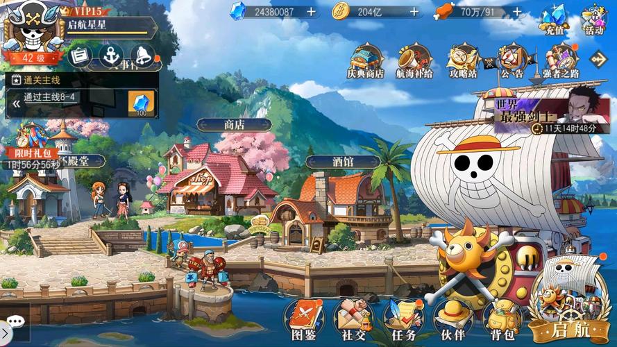 航海王启航2015年春季上线,由DeNA中国与万代南梦宫联合开发,玩家可招募路飞等经典角色组建航海团队,通过培养角色、搭配阵容参与海上冒险与对战。
