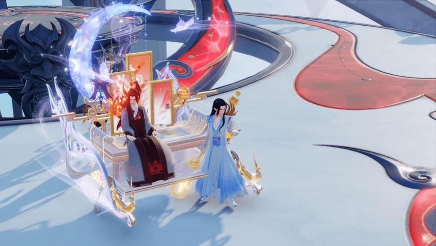 鹊影霜华套装银蓝配色,有鹊鸟纹样、冰晶特效,适配仙侠角色;十阶坐骑属性加成高,带专属动态光效,移动时生成霜华轨迹。