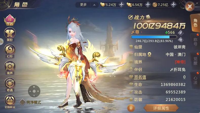 操作指引:点击主界面角色头像,进入详细信息面板。