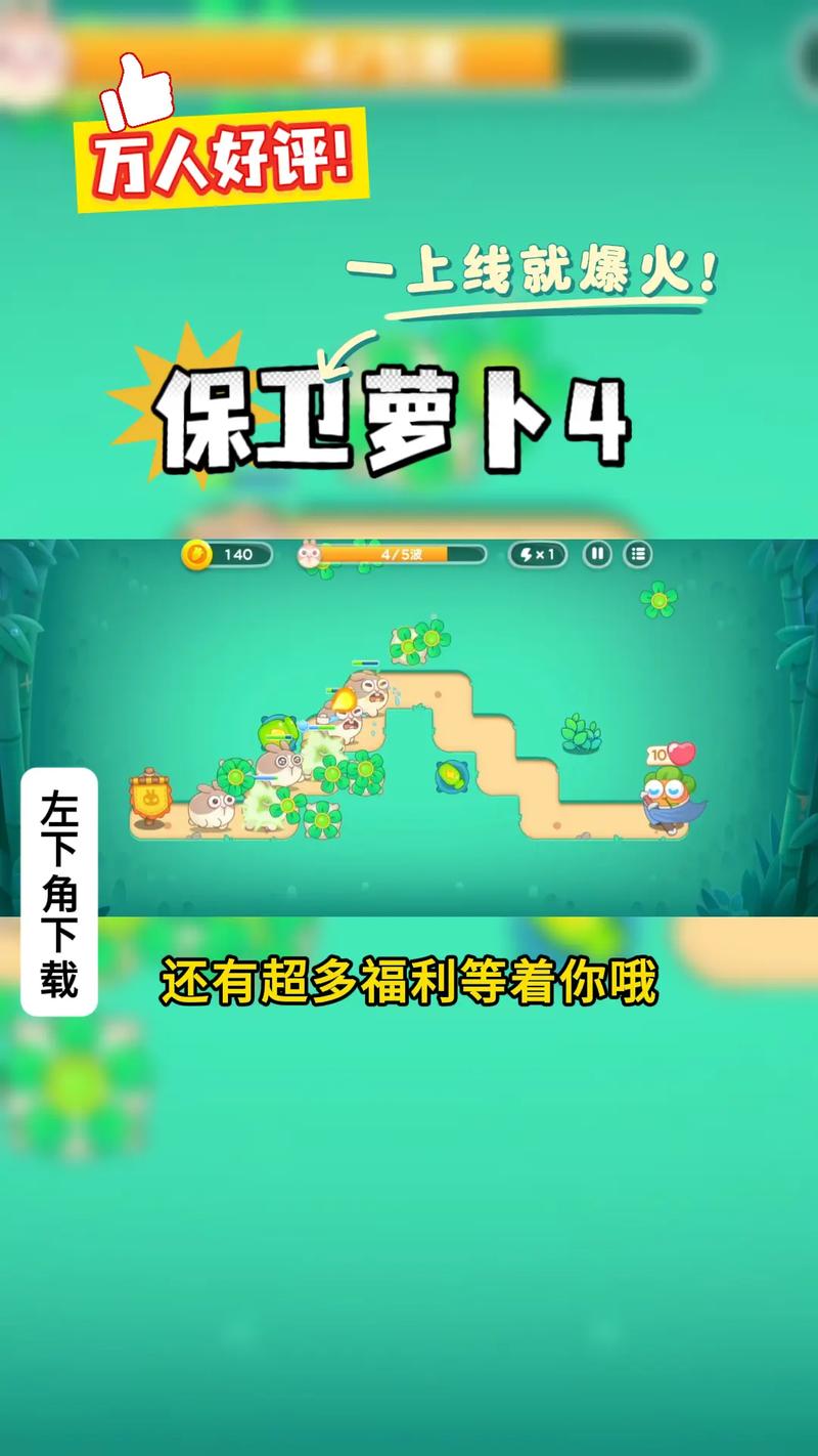 保卫萝卜4延续经典塔防玩法,新增趣味元素。玩家需布置防御塔,阻止怪物吃萝卜。