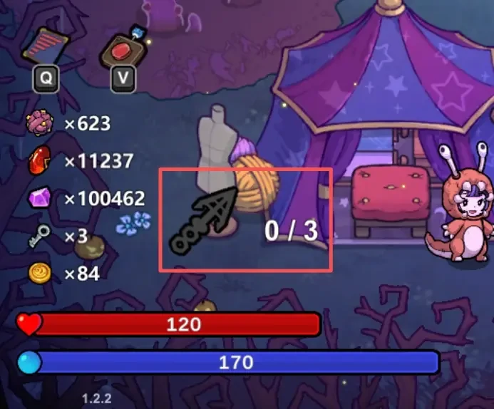 鱼叉的剩余数量会显示在角色血条的上方,具体位置可参考下方配图