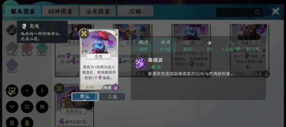 部从就是游戏里的作战单位,不同势力的部从对应着不同的技能优势,先来说说幽都,这个势力主打后期压制,核心依靠鬼魂与瘴气两大机制召唤强力作战单位,在中后期逐步建立战场优势。