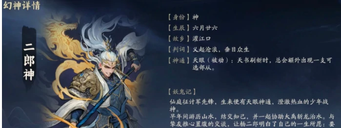 除了这类神兽幻神,游戏里还有神话角色类幻神,二郎神就是其中的热门之选。这个幻神的设定很特别,它不会直接给队伍提供战力加成,但能大幅提升我们从天书中获取心仪阵容组件的概率,帮我们快速敲定完美阵容。对于前期没什么对战思路的新手来说,二郎神能帮我们轻松实现阵容碾压,上手同样简单。