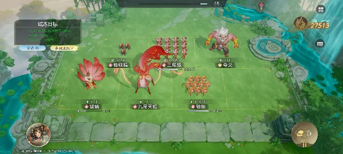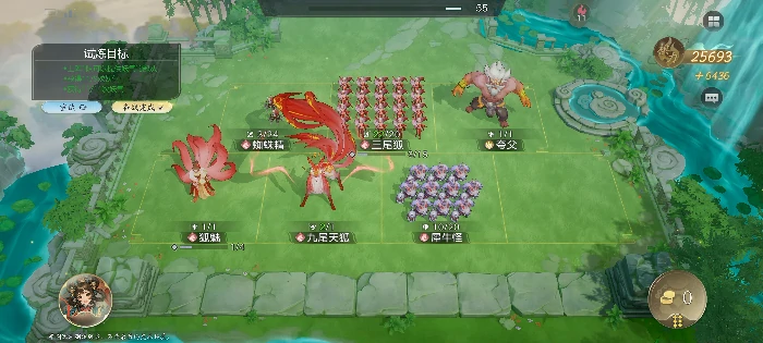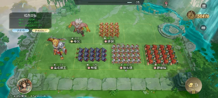 依次上场熊怪、夸父、狼头领(此操作是为了达成第三个目标),随后部署野猪精和狰妖