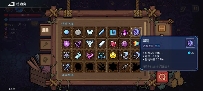 后期身上要多备那种扣多少血就补多少临时护盾的药水,这玩意儿打BOSS的时候特别顶用,小怪的话靠黑洞转几圈就能清干净。核心输出还是赤焰晶石配黑洞的组合,解锁广域增幅后,能直接给输出效果拉满。武器搭配上,一把带增幅属性,另一把配蓄能法球加魔力蔓藤来堆蓝量,不然蓝条根本跟不上耗蓝速度,用两把黑洞法杖就够了,三把的话不仅蓝量回不上来,还容易把游戏卡崩。我已经把技能透明度调到几乎最低了,还是会有点卡顿。