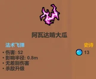 俗称阿瓦达索命,低蓝耗让它的施法频率更高,技能半径缩小反而让它在怪物贴脸时也能放心使用。自带杀敌升级的词条,所以想玩这个法术的话,建议在拿到史诗法术的时候尽早洗出这个词条,要是到第三关才拿到,作用就不大了(实际上就算第一关拿到,也未必能在第三关升到二星)。