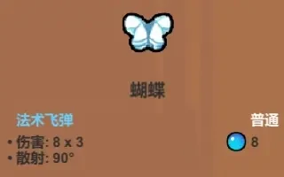 由于技能段数多,很适合搭配毒系辅助,但目前毒系效果偏弱,所以蝴蝶的实际伤害表现也就那样。它自带追踪效果,理论上搭配闪电链能打出高额伤害,但实战中由于蝴蝶飞行速度慢,还会被子弹、障碍物摧毁,甚至会被无差别伤害误杀,实用性很差。升级后也没有新增词条。目前在我心里,蝴蝶是最弱的两个输出法术之一,只有等毒系加强之后,它的地位才有可能提升。
