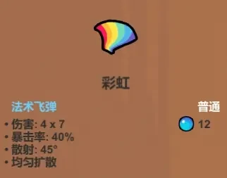 和蝴蝶玩法类似,但实际伤害比蝴蝶高很多,因为它自带高暴击率和贯穿效果,可以适配暴击流玩法。虽然它的散射弹道不容易命中,但搭配寻踪可以把散射变成集束伤害,寻踪还能触发二段伤害(贯通伤害+顶端星芒伤害)。它的射击距离较短,搭配引线就能解决这个问题(搭配引线同样能触发二段伤害)。它也很适合搭配闪电链,闪电链对它的伤害增益很高。不过就算叠了这么多buff,它的伤害和伤害范围也算不上顶尖,只能说能用、不算差。升级后也没有新增词条。