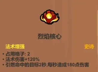 这是个强力增益法术,虽然占两个槽位,但120%的增伤相当于两个半一星伤害强化,附带的引燃效果还相当于白送一个无副作用的三级毒,几乎所有玩法体系都适配。