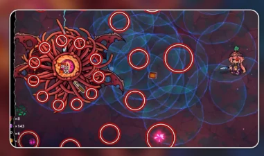 第四招是半血狂暴后释放的360度圆圈弹幕,弹幕会随着飞行距离不断变大,规避难度拉满。另外要注意两点:一是它的弹幕类召唤物基本无法被阻挡;二是目前无法确定它是否在召唤虫群或释放技能时处于无敌状态。整体而言,打这只boss还是以硬刚输出为主。