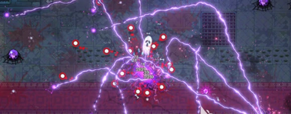 孵化者:算是比较棘手的对手,如果前期法术构筑不到位,很难做到无伤通关。它的前半血阶段难度不高,但血量降到一半后,难度会突然飙升。它主要有两种攻击行为:第一种是突然朝某个方向冲刺,路径上会留下大量子弹用来封锁你的走位,这个机制和第二关的小怪拦截者类似;第二种是留下几个虫卵,虫卵的血量不高,但孵化出来的小孵化者血量很厚,建议优先处理虫卵。能不能顺利拿下这个对手,主要看你的范围伤害能力够不够强,清虫卵的效率是关键。