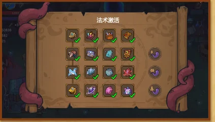 紫色触手娘(冒险第一关):消耗混沌水晶或是古神之血,就能自主选择并禁用指定的法术