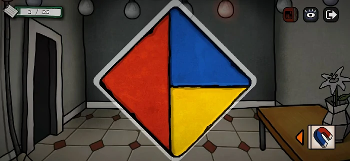打开门进入房间后拿到一桶水,把墙上的画调整成图中的颜色,就能获得一根羽毛
