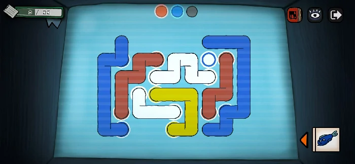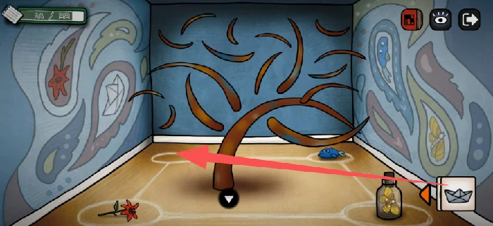 将纸船、小红花、蝴蝶、蓝色的鱼按照下图的方式摆放好,就能拿到线道具