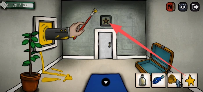在这个房间的地面上拾取道具,拿到红色颜料