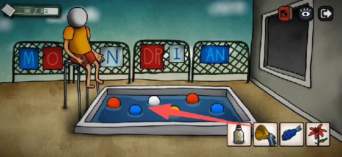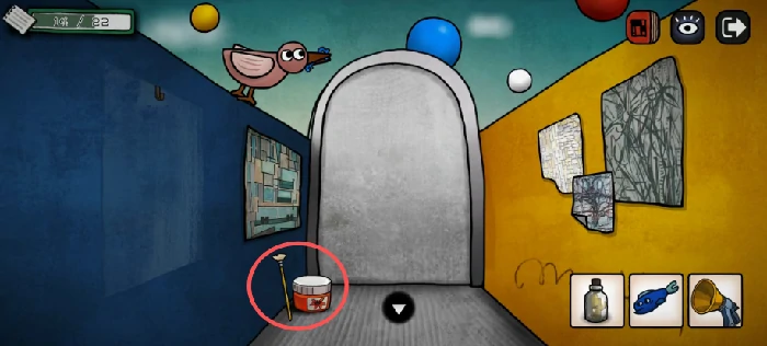 在有画笔的房间打开箱子,能拿到一个零件和一个清理泳池的道具