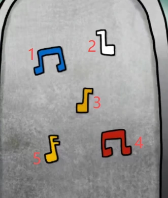 不用纠结音符的专业打法,正确的顺序是蓝白黄红黄(给大家通俗解释下,第一个黄音符是单尾巴,第二个黄音符是双尾巴,对应图里的样式)