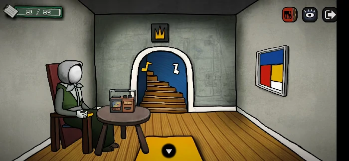 把线交给拿着画框的人物,就能拿到带画布的画框;顺便把磁带交给她放进收音机里,会得到一段旋律线索,这个线索后面通关会用到