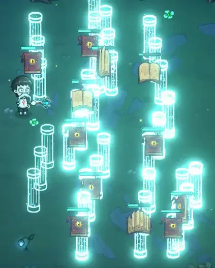 核心构筑思路: 以召唤魔法书为核心载体,配合光之柱搭建召唤护壁,再借助梅林长须将召唤物的数量上限直接翻倍,最终构建出环绕自身的多重法术屏障网。