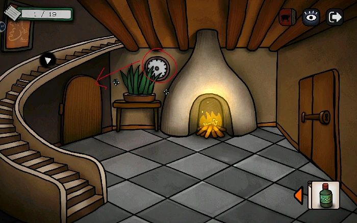 接着拿走空的牛奶壶,用它浇灭壁炉里的火,取出里面的钥匙,再用这把钥匙打开右侧的锁