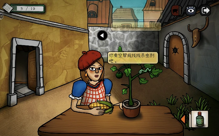 点击进入院子,和院子里的女孩对话,把杀虫剂交给她,之后就能长出西红柿