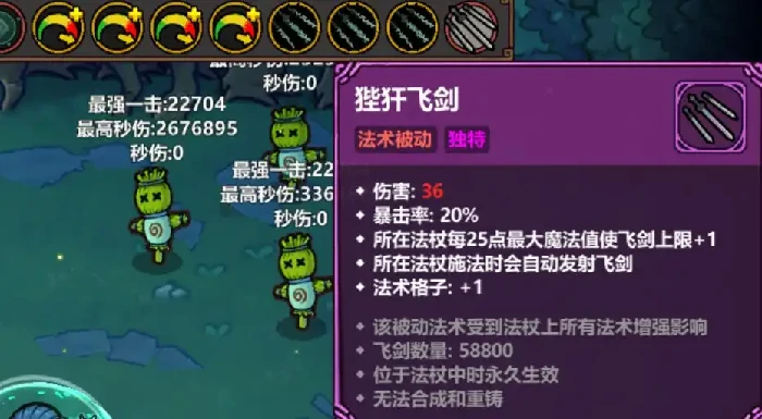 分裂和多重施法也能帮助提升飞剑数量,要是这两个法术刷出来的数量不多,尽量不要合成,单独使用的收益更高。