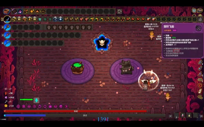 公转狴犴飞剑流的核心逻辑,是靠快速累积狴犴飞剑数量触发倍率伤害。这套玩法的核心构筑离不开狴犴飞剑、魔方、公转和扩容石;搭配超载散射压缩法杖冷却,用激光或审判之剑这类法术触发飞剑,再通过储魔之匣、奥数屏障堆叠法杖魔力来提升飞剑数量,分裂、多重施法也能进一步扩充飞剑阵容。