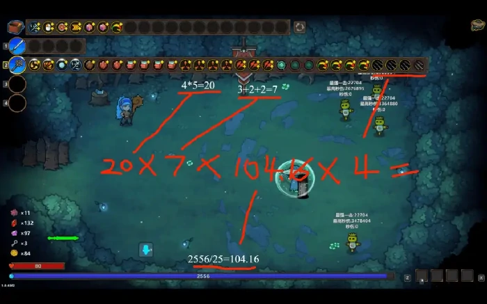举个例子,单把飞剑的伤害计算为36*58800/500=4233.6,当飞剑大规模成型后,秒伤会非常夸张。